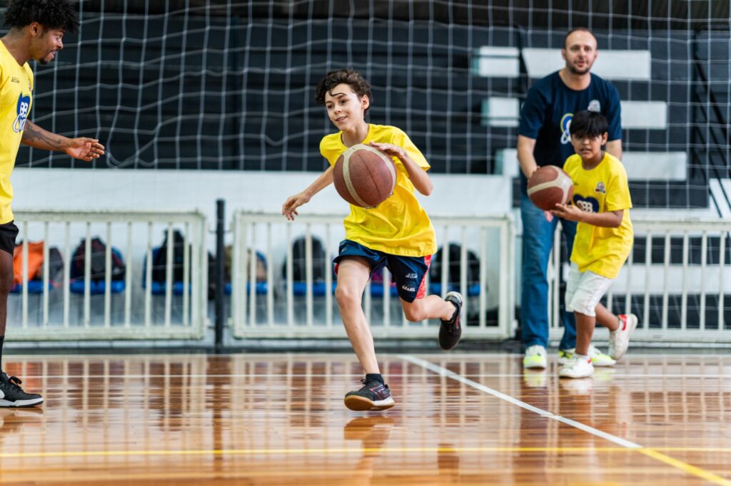 Além da presença no jogo da Seleção, as crianças também participaram de um festival de basquete promovido antes da partida, onde puderam se divertir, interagir e vivenciar atividades voltadas ao esporte. A programação incluiu jogos recreativos, dinâmicas de habilidades e momentos de convivência, reforçando o espírito de integração e a troca de experiências que o CBB Cuida busca incentivar.