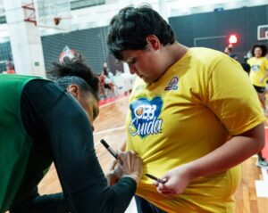 Durante essas partidas nossas alunas e alunos tiveram a oportunidade de participar do cerimonial de abertura, acompanhando as atletas na apresentação das equipes e execução do hino nacional. Também participaram de ativações em quadra, ganharam prêmios, além de garantirem as fotos com os ídolos.